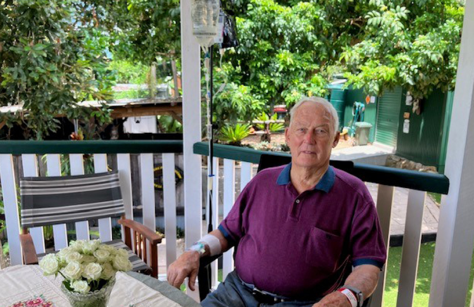 Mr Feeney chooses to have his treatments on his back deck, one of his favourite places to spend time.